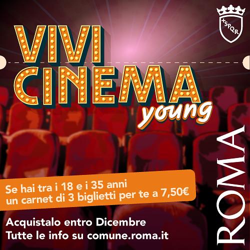 “VIVI CINEMA YOUNG” ti porta al cinema! Se sei un giovane tra i 18 e i 35 anni compiuti, per te, un carnet di 3 ingressi al costo di 7,50€. Più di 8.000 biglietti acquistabili dal 5 Dicembre al 31 Dicembre sul sito vivispettacolo.it fino ad esaurimento scorte, da utilizzare nelle sale aderenti di Roma dal 1° Febbraio al 31 Agosto 2026.